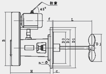 | 攪拌機型號 | 電機功率 | 攪拌機轉(zhuǎn)速 | 攪拌器直徑 | 安 裝 外 型 及 尺 寸 | 攪拌容量 | 重量 | ||||||||