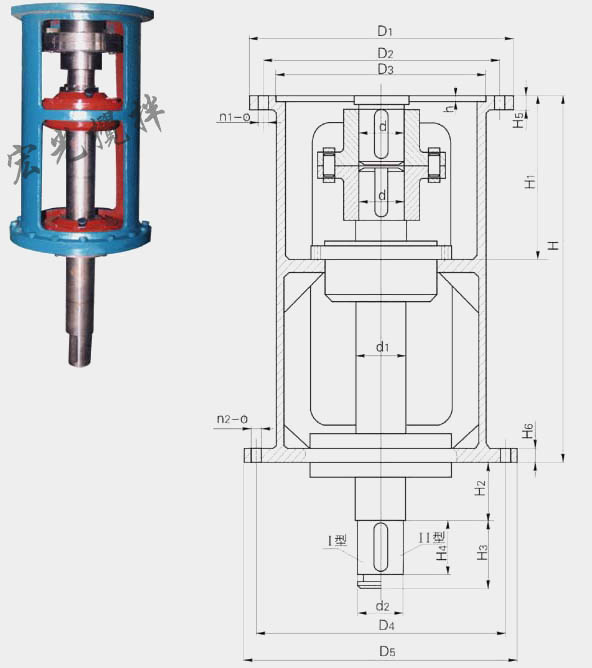 機架型號 減速機 D1 D2 D3 n1-φ D4 D5 n2-φ d d1 d2 h H H1 H2 H3 H4 H5 H6