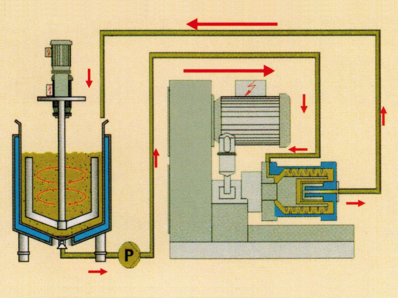 研磨能量集中,所有物料都是在研磨區(qū)內(nèi)進行研磨,所得物料粒徑分布窄;攪拌桶和分散機內(nèi)漿料大流量循環(huán),所以漿料能在短時間能循環(huán)數(shù)十遍,大批量處理物料。
